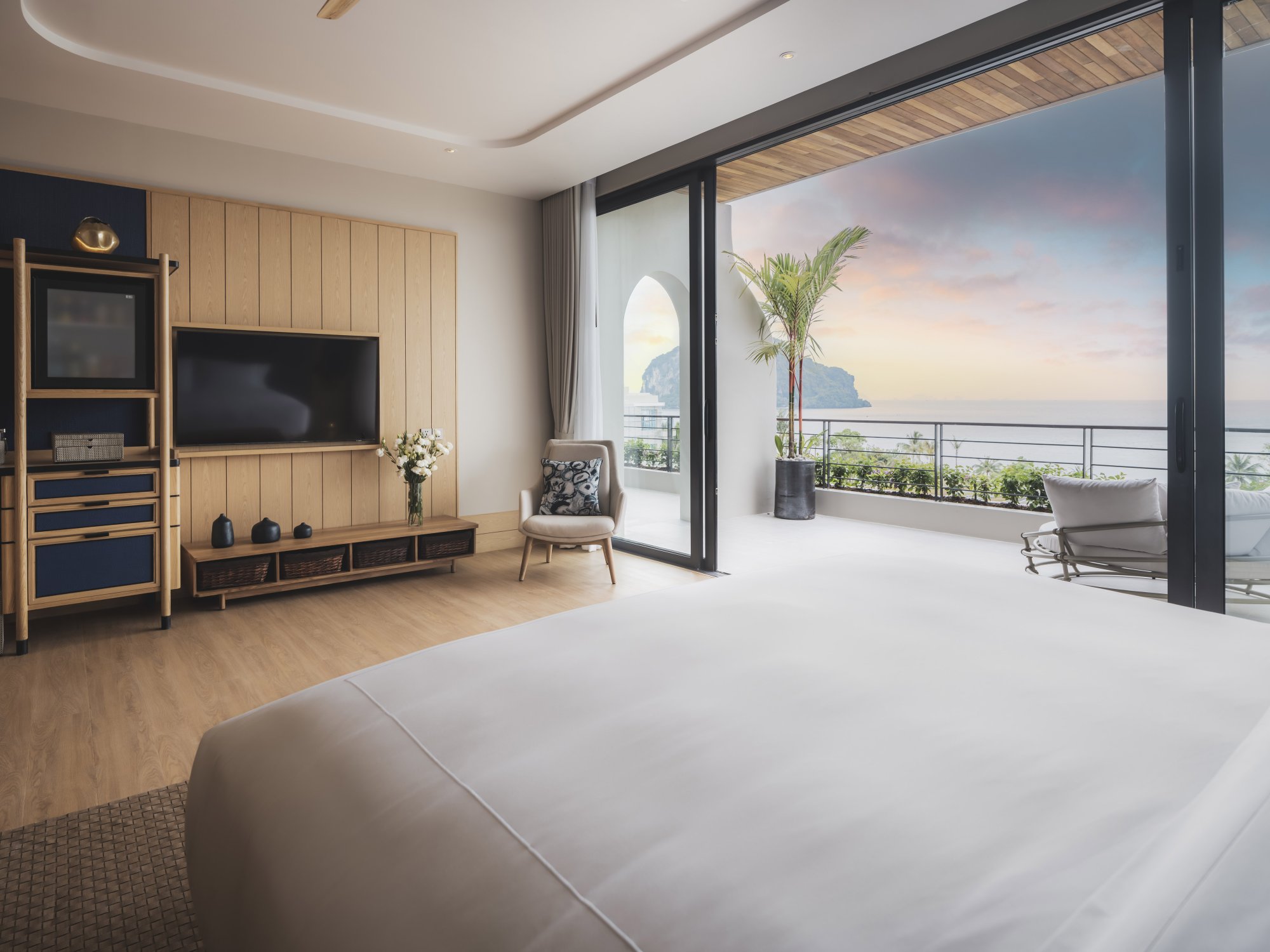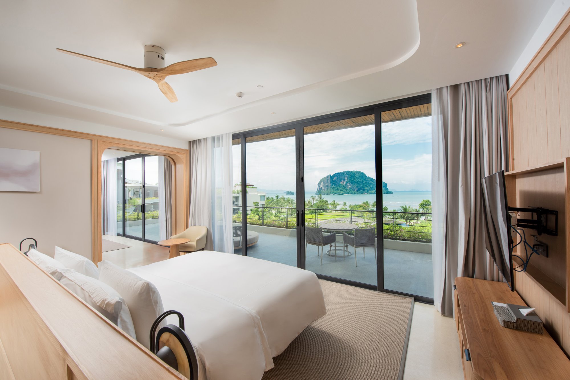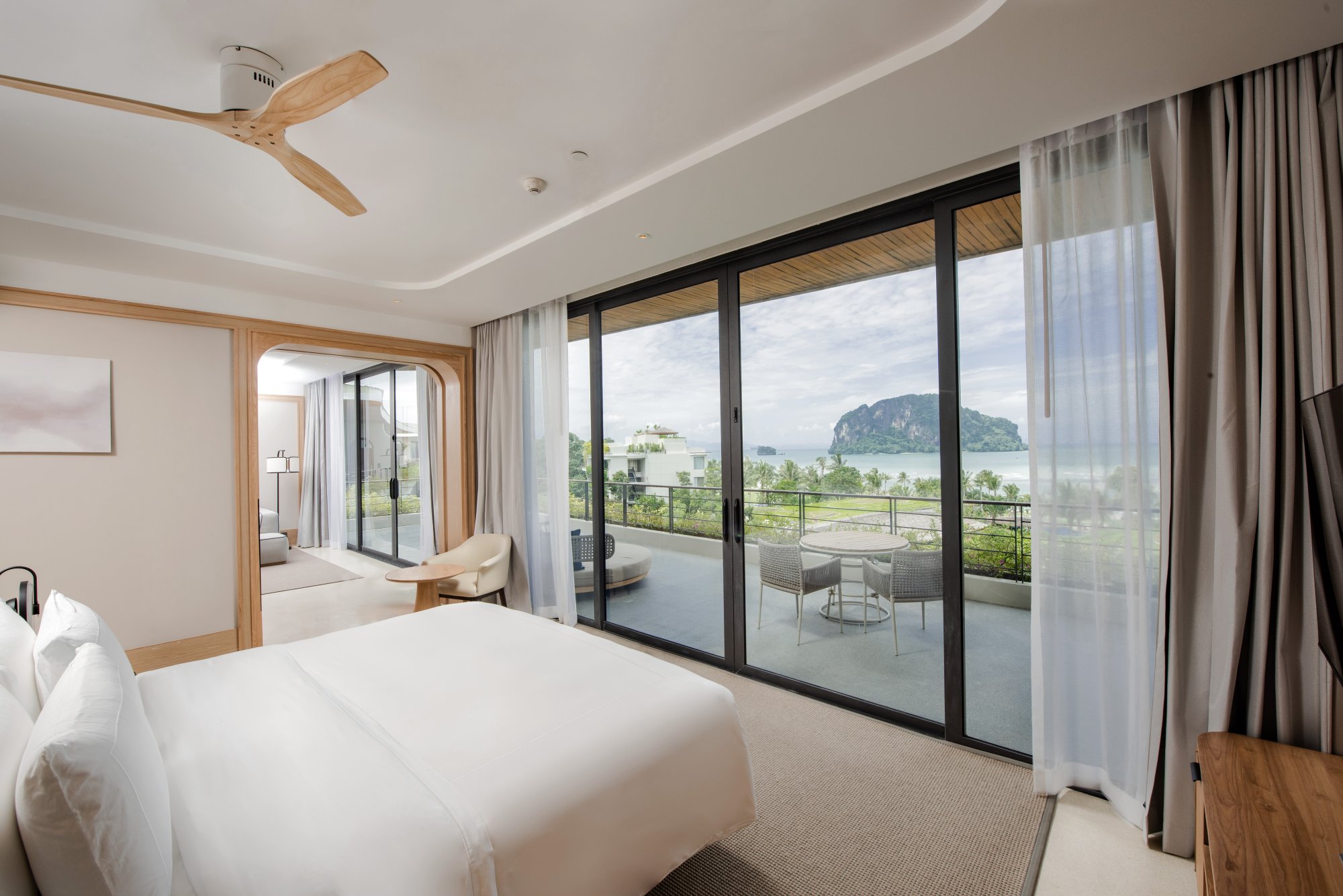 Vychutnajte si nádherný výhľad na Andamanské more zo súkromného balkóna tohto priestranného apartmánu (90 m²) na druhom alebo štvrtom poschodí hotela. Interiér tvorí vyvýšená platforma s manželskou posteľou (alebo dvoma samostatnými lôžkami), veľký šatník a obývacia časť s francúzskymi oknami. Luxusná kúpeľňa zahŕňa dve umývadlá, dažďovú sprchu, relaxačnú vaňu a prémiové kúpeľňové produkty. Okrem toho budete môcť využívať kávovar a televíziu s plochou obrazovkou. K dispozícii je tiež možnosť prepojenia dvoch apartmánov. Maximálna kapacita: 2 dospelí a 1 dieťa.