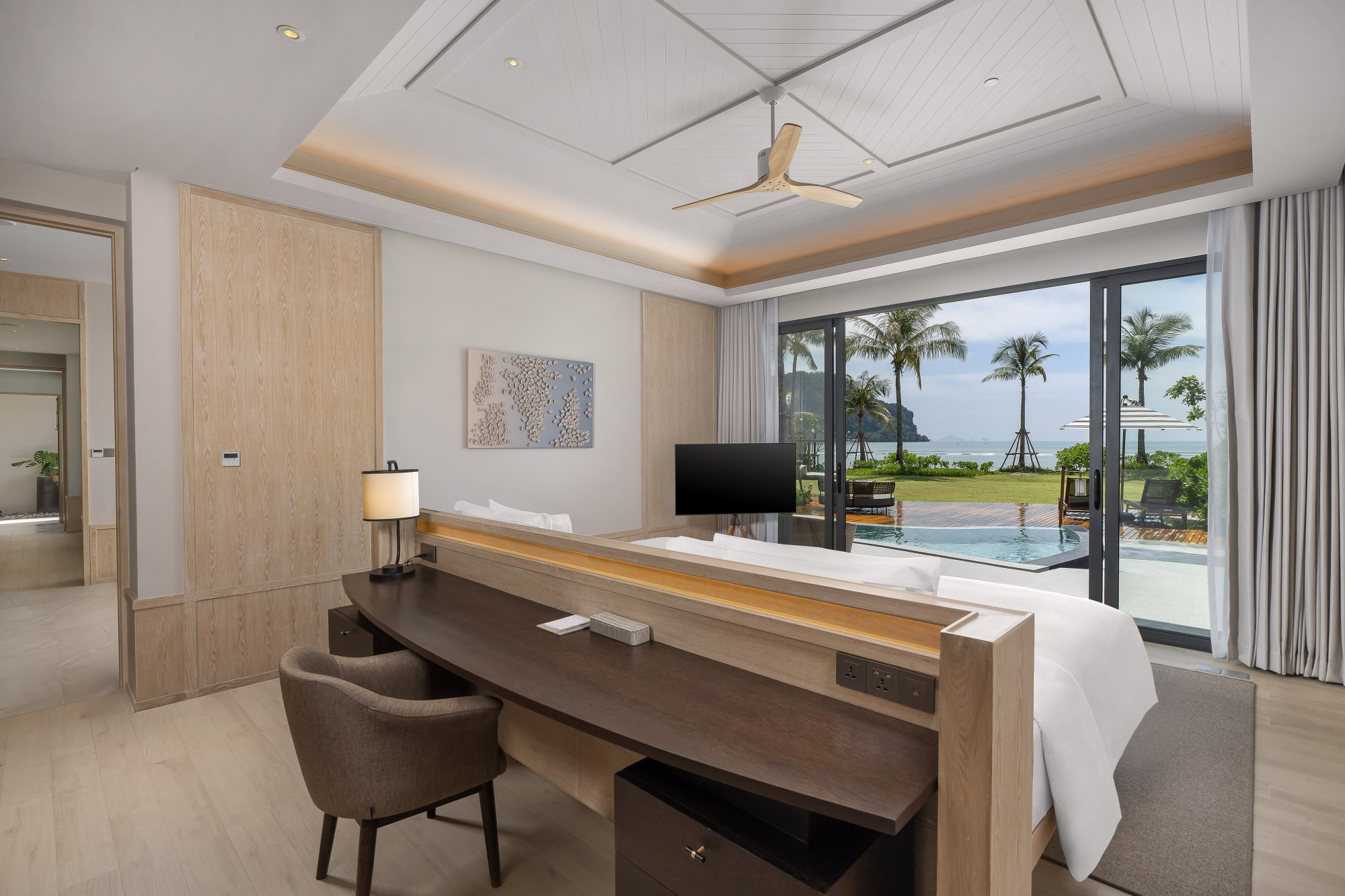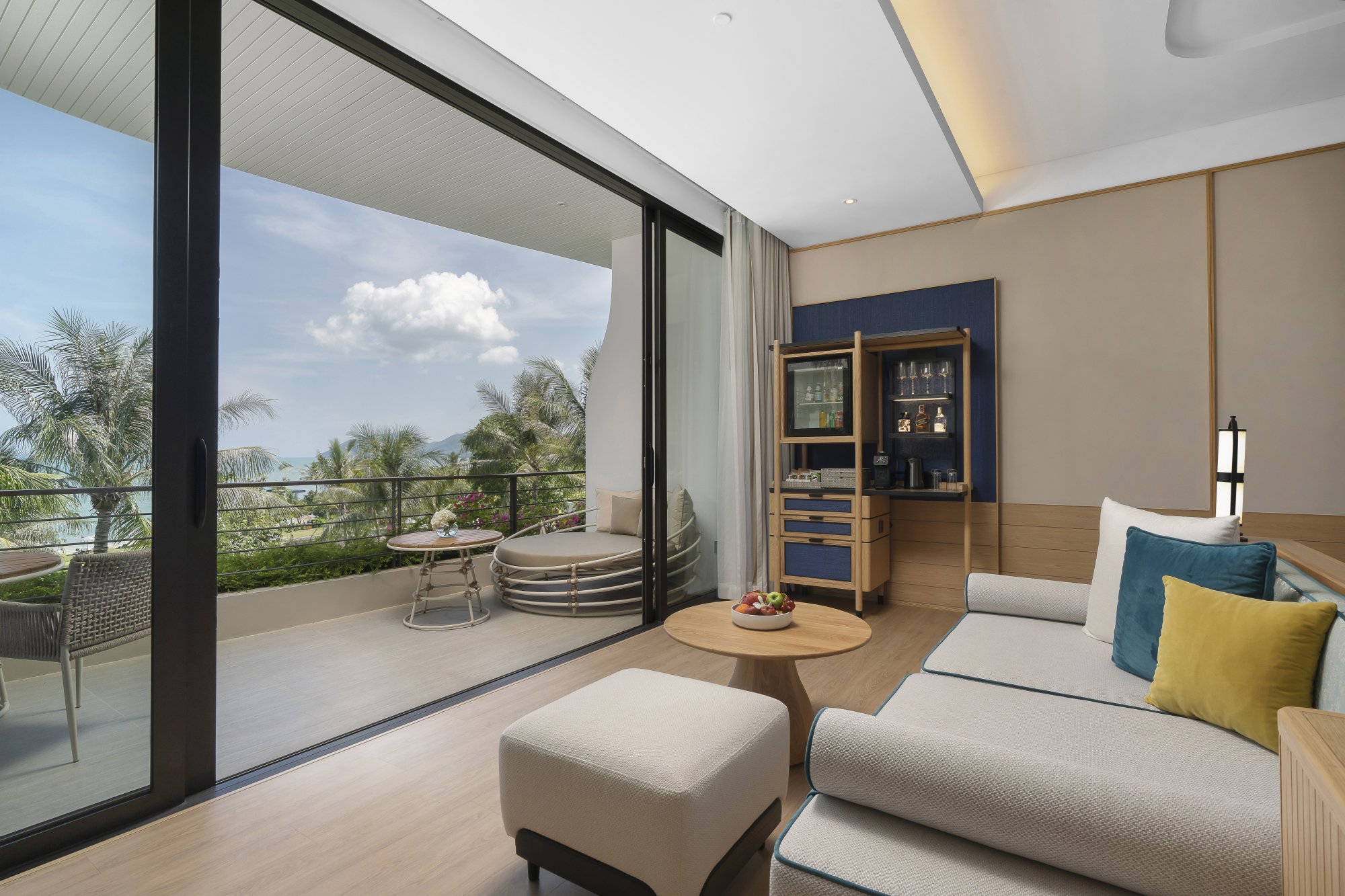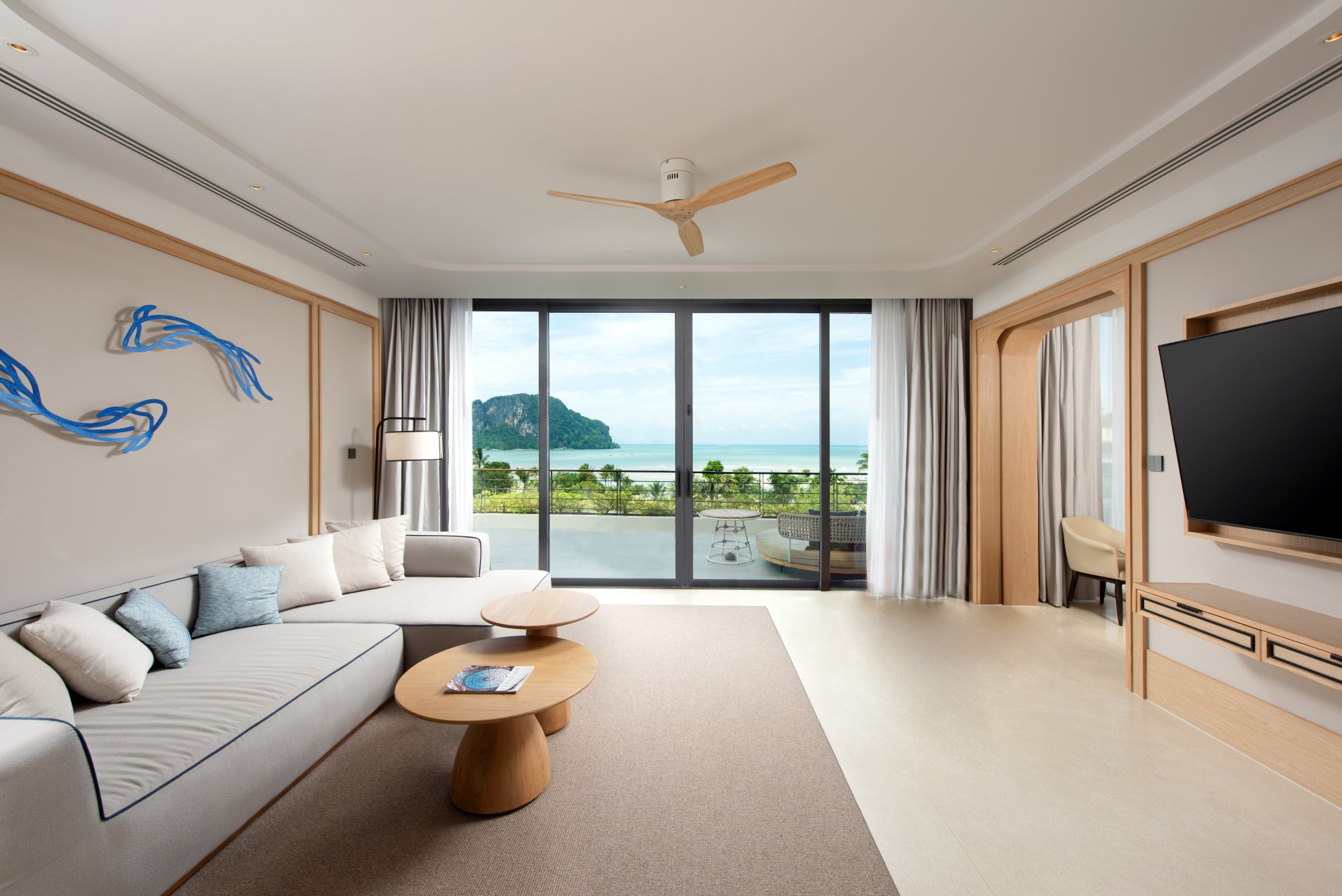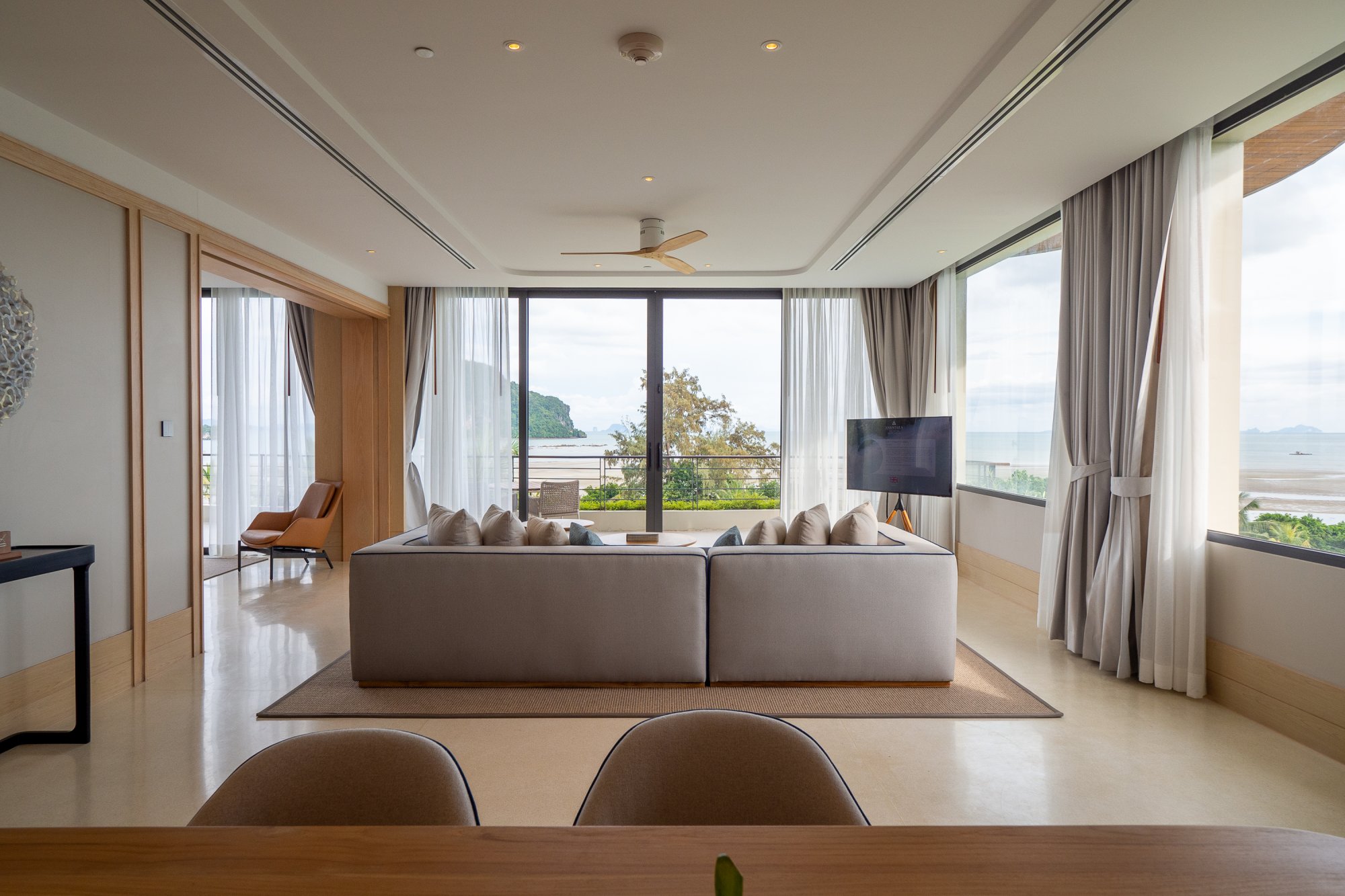 Vychutnajte si nádherný výhľad na Andamanské more zo súkromného balkóna tohto priestranného apartmánu (90 m²) na druhom alebo štvrtom poschodí hotela. Interiér tvorí vyvýšená platforma s manželskou posteľou (alebo dvoma samostatnými lôžkami), veľký šatník a obývacia časť s francúzskymi oknami. Luxusná kúpeľňa zahŕňa dve umývadlá, dažďovú sprchu, relaxačnú vaňu a prémiové kúpeľňové produkty. Okrem toho budete môcť využívať kávovar a televíziu s plochou obrazovkou. K dispozícii je tiež možnosť prepojenia dvoch apartmánov. Maximálna kapacita: 2 dospelí a 1 dieťa.