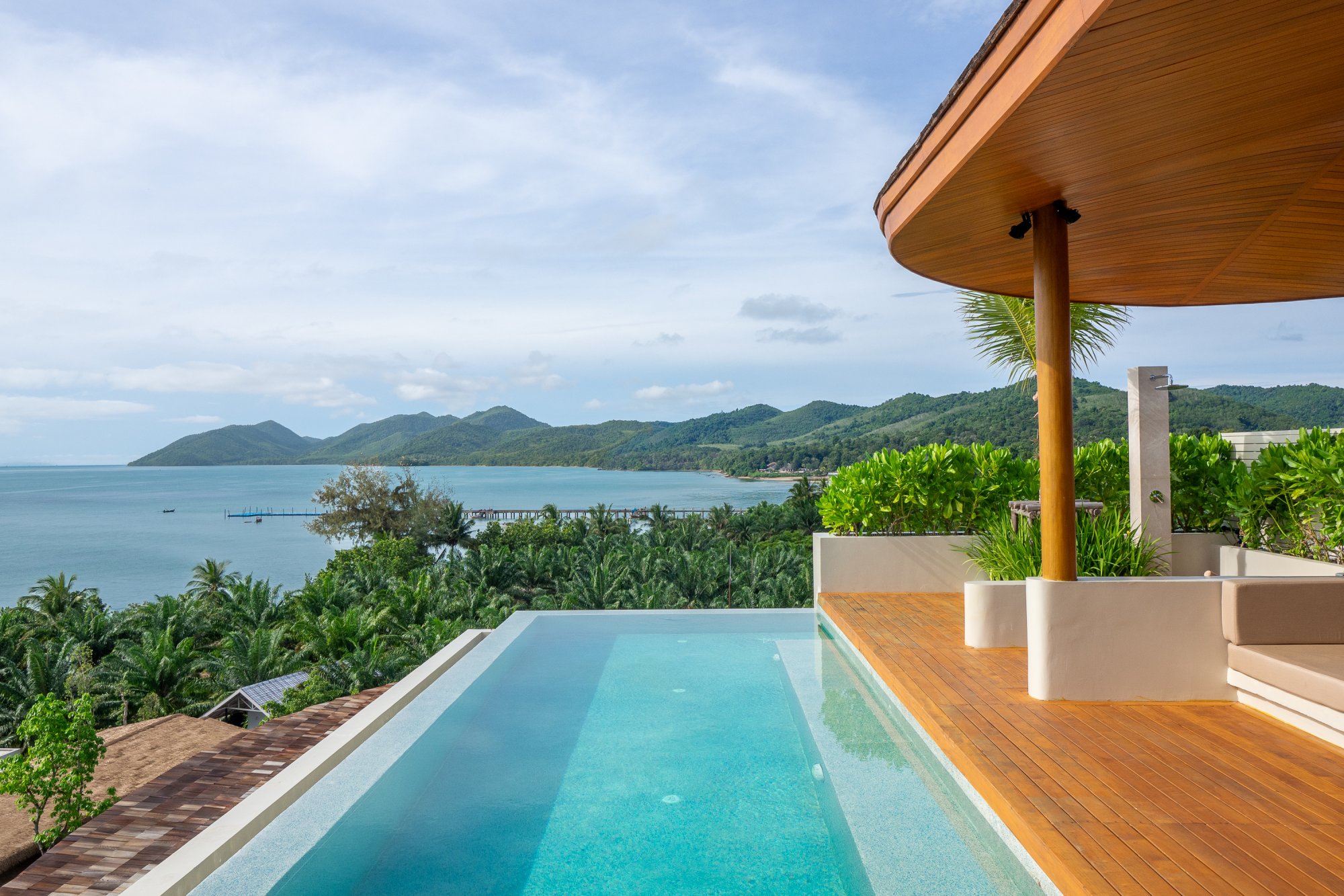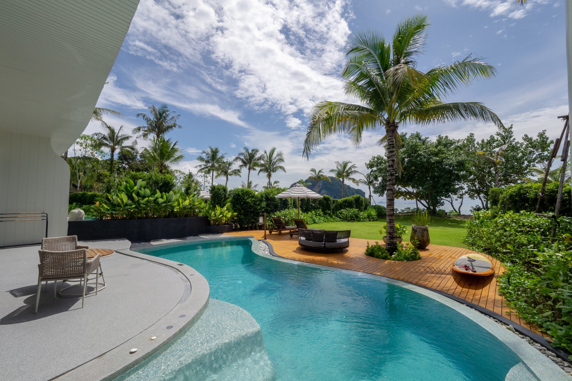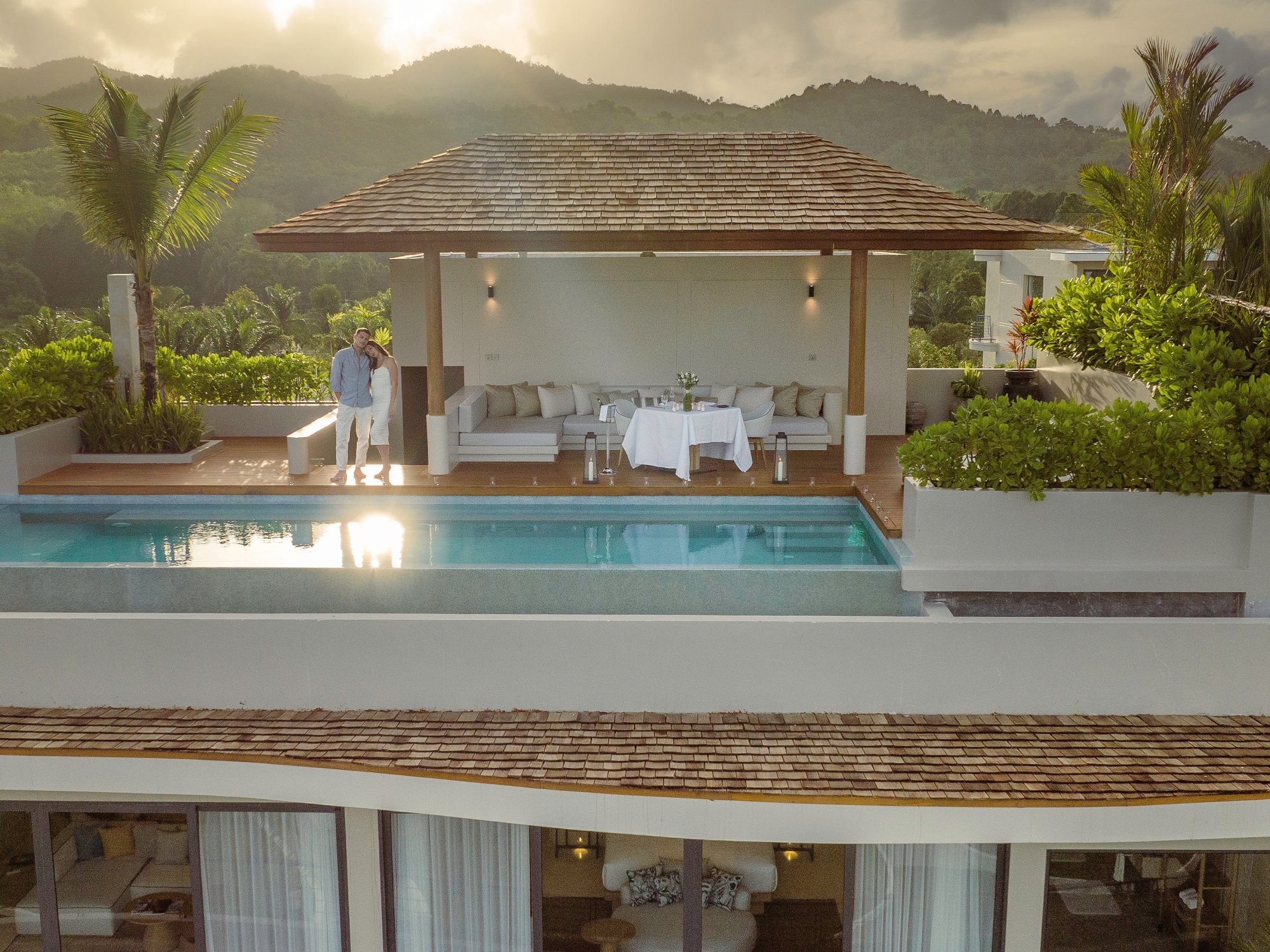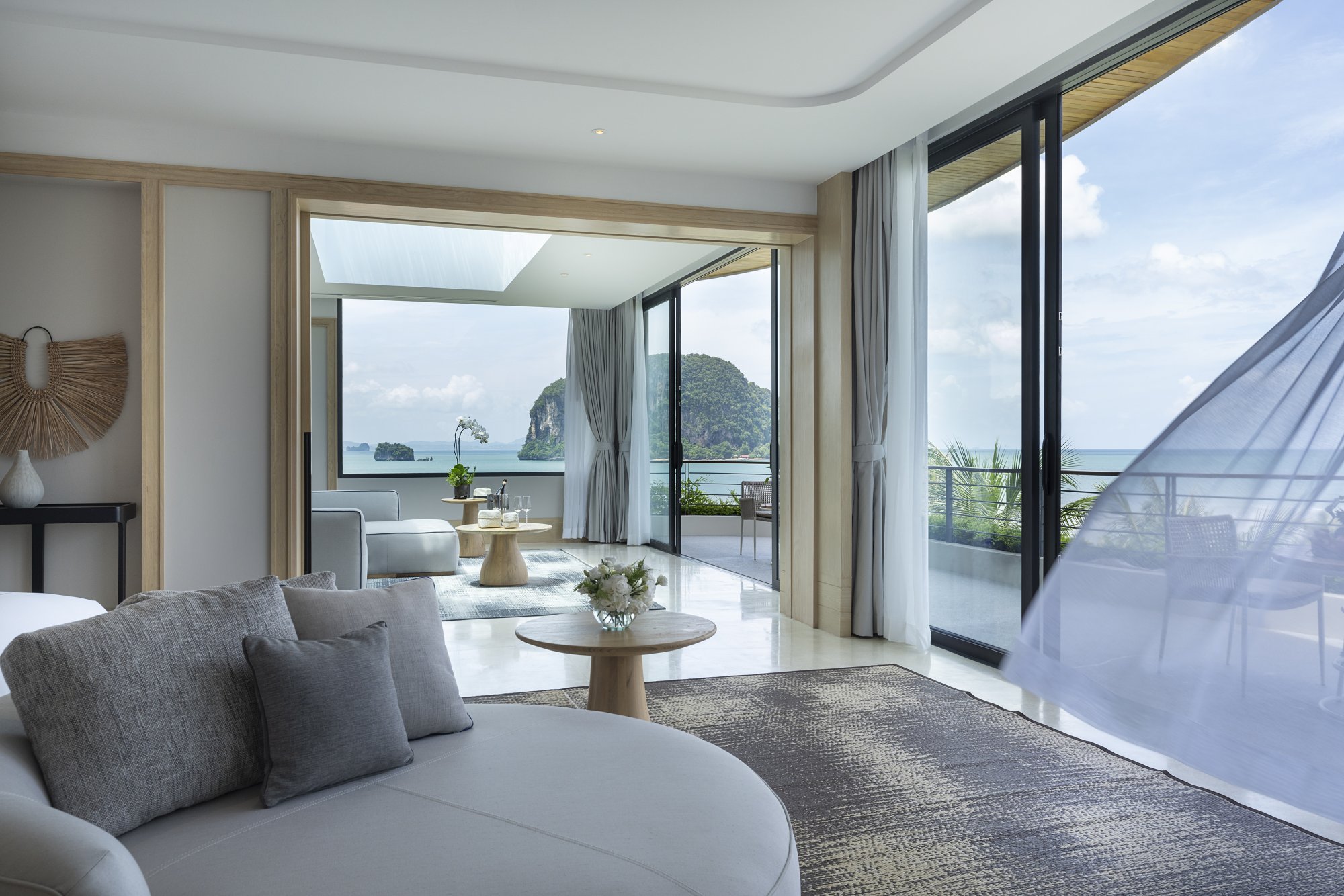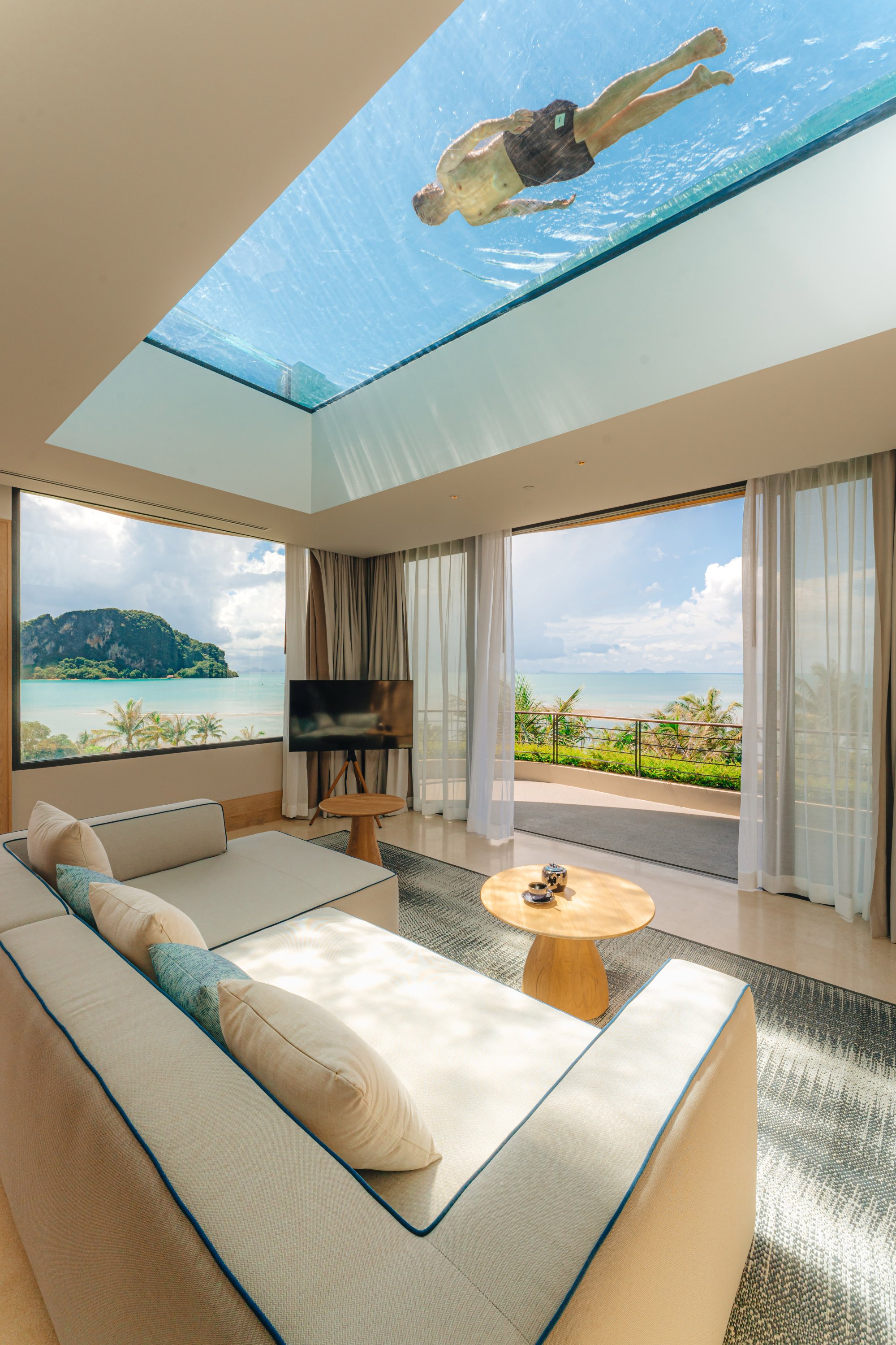 Pre tých, ktorí túžia po veľkolepom luxuse a pohodlí, je k dispozícii tento rohový apartmán (366 m²) umiestnený v najvyšších poschodiach hotela, odkiaľ sa ponúkajú úchvatné panoramatické výhľady na záliv Phang Nga. Interiér je plynule prepojený s exteriérom pomocou nevšedných prvkov. Na spodnom podlaží sa nachádza hlavná spálňa, kúpeľňa s dvoma dažďovými sprchami, šatník, kuchyňa, jedáleň a priestranná obývacia izba s preskleným stropom, ktorý odkrýva výhľad na nekonečný bazén. Horné poschodie tvorí rozsiahla terasa s preskleným nekonečným bazénom a prístreškom ako stvoreným pre romantické večere pri sviečkach. Súčasťou vily je aj vírivka, toaleta pre hostí, kávovar, televízia s plochou obrazovkou, Wi-Fi pripojenie, Bluetooth reproduktor a služby osobného komorníka. Maximálna kapacita: 2 dospelí.