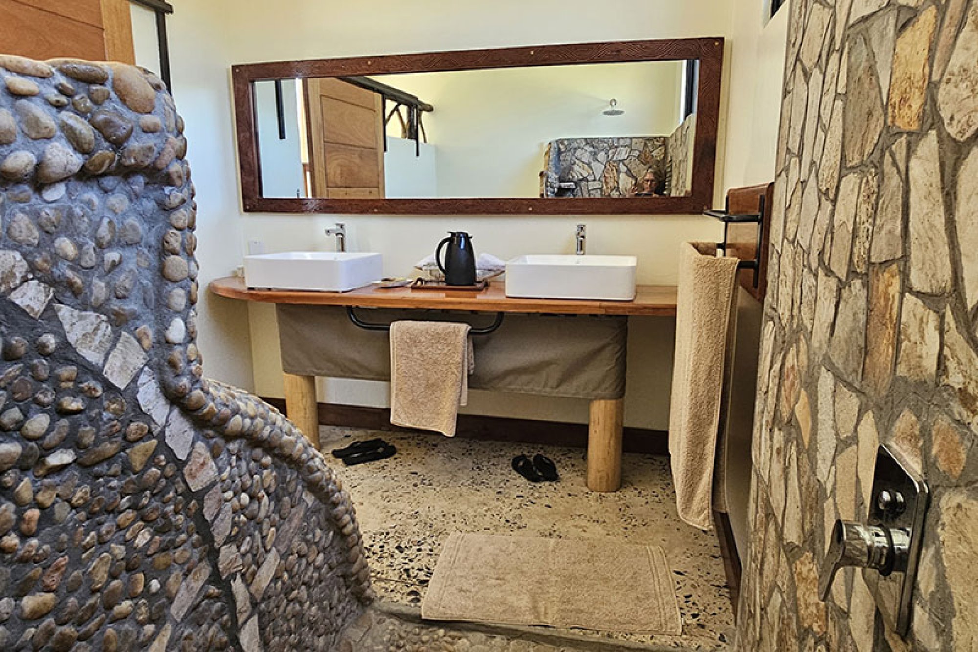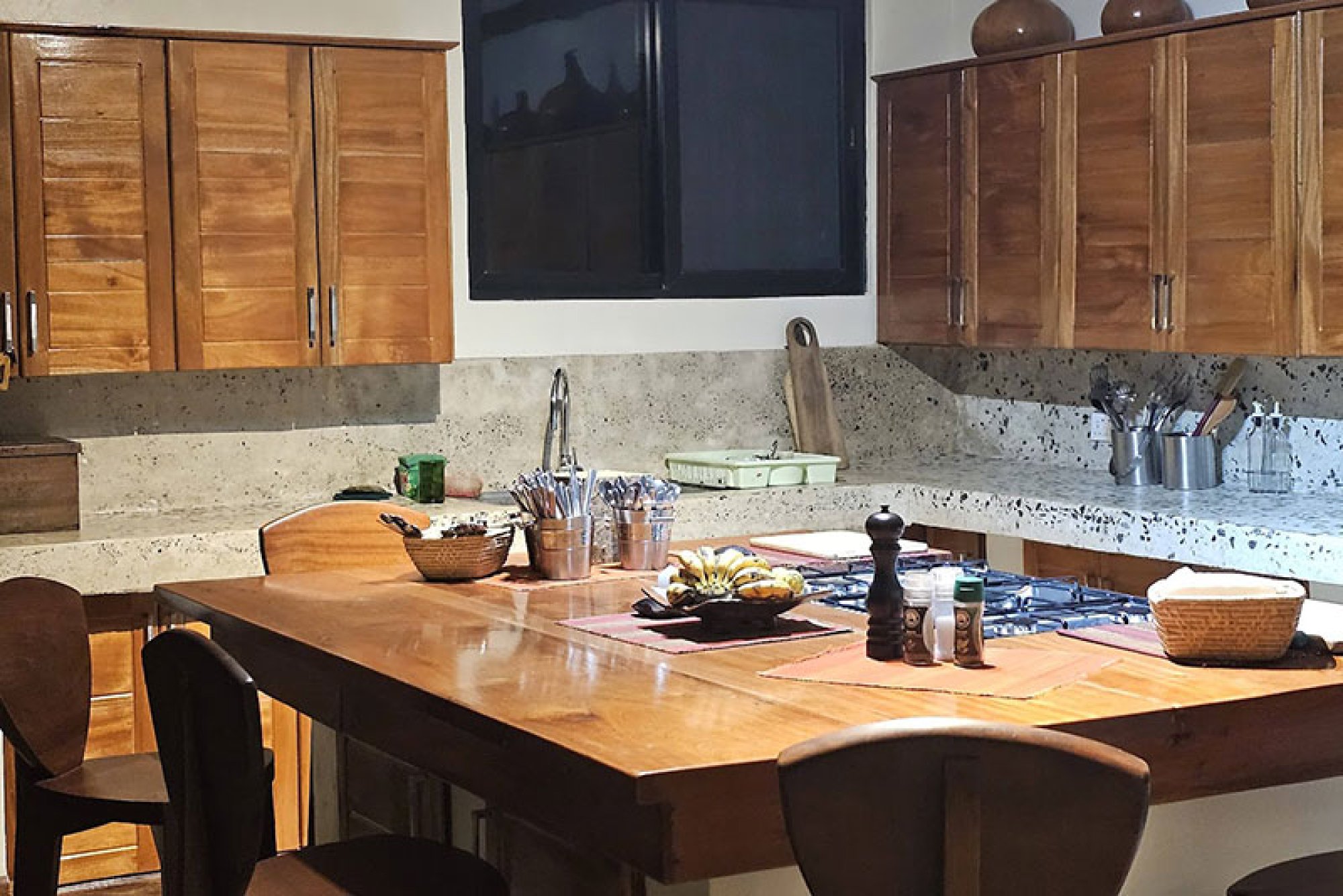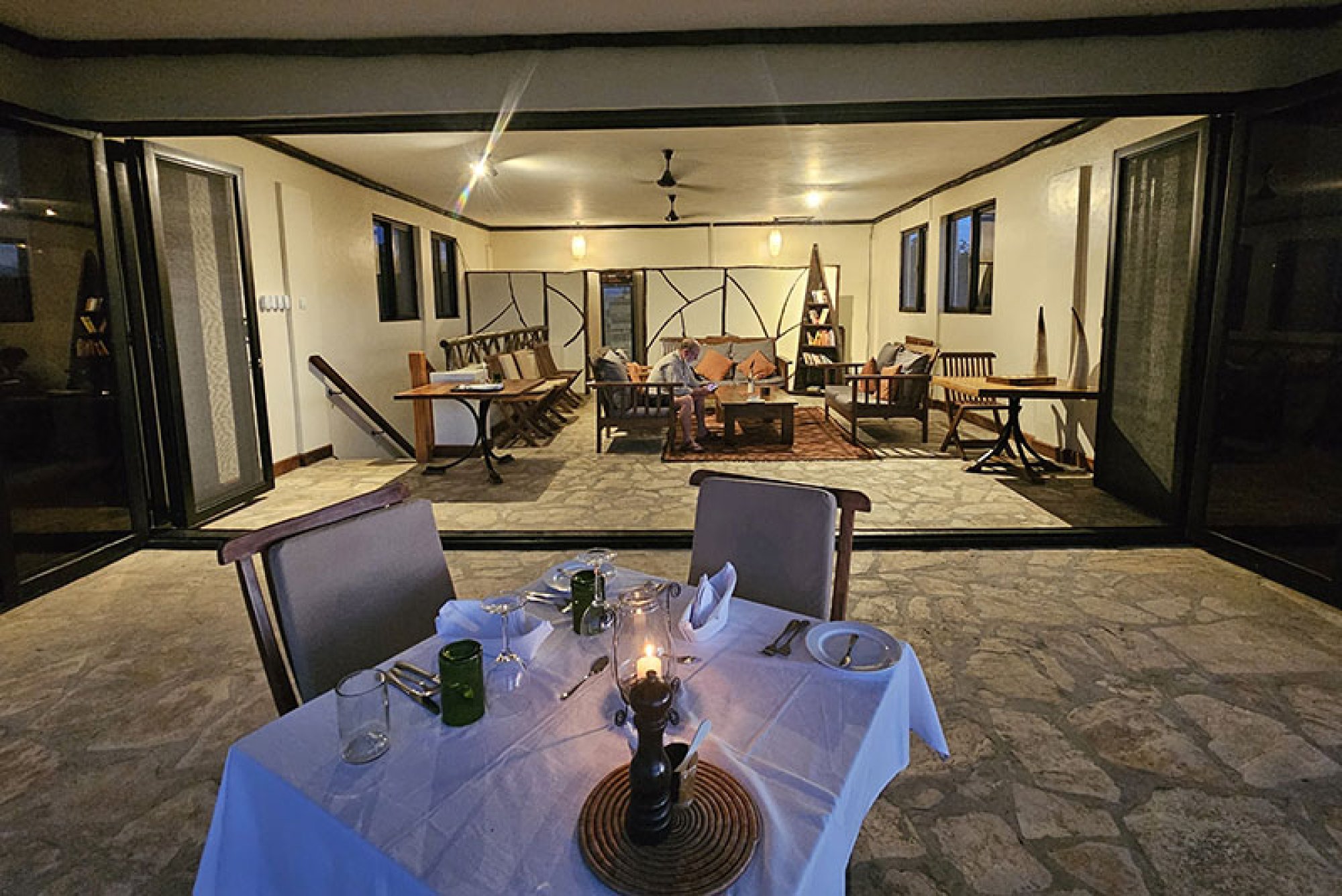 Kdykoliv během dne si můžete připravit svůj oblíbený horký nápoj nebo si ho nechat donést na libovolné místo ve vile. Kromě toho můžete využívat soukromou kuchyni s veškerým vybavením pro přípravu vlastních pokrmů, koktejlů či půlnoční svačinky. Součástí vily je vnitřní i venkovní jídelna a také rozlehlá krytá veranda s panoramatickým výhledem na řeku, odkud se nabízí nádherný výhled na východ i západ slunce.