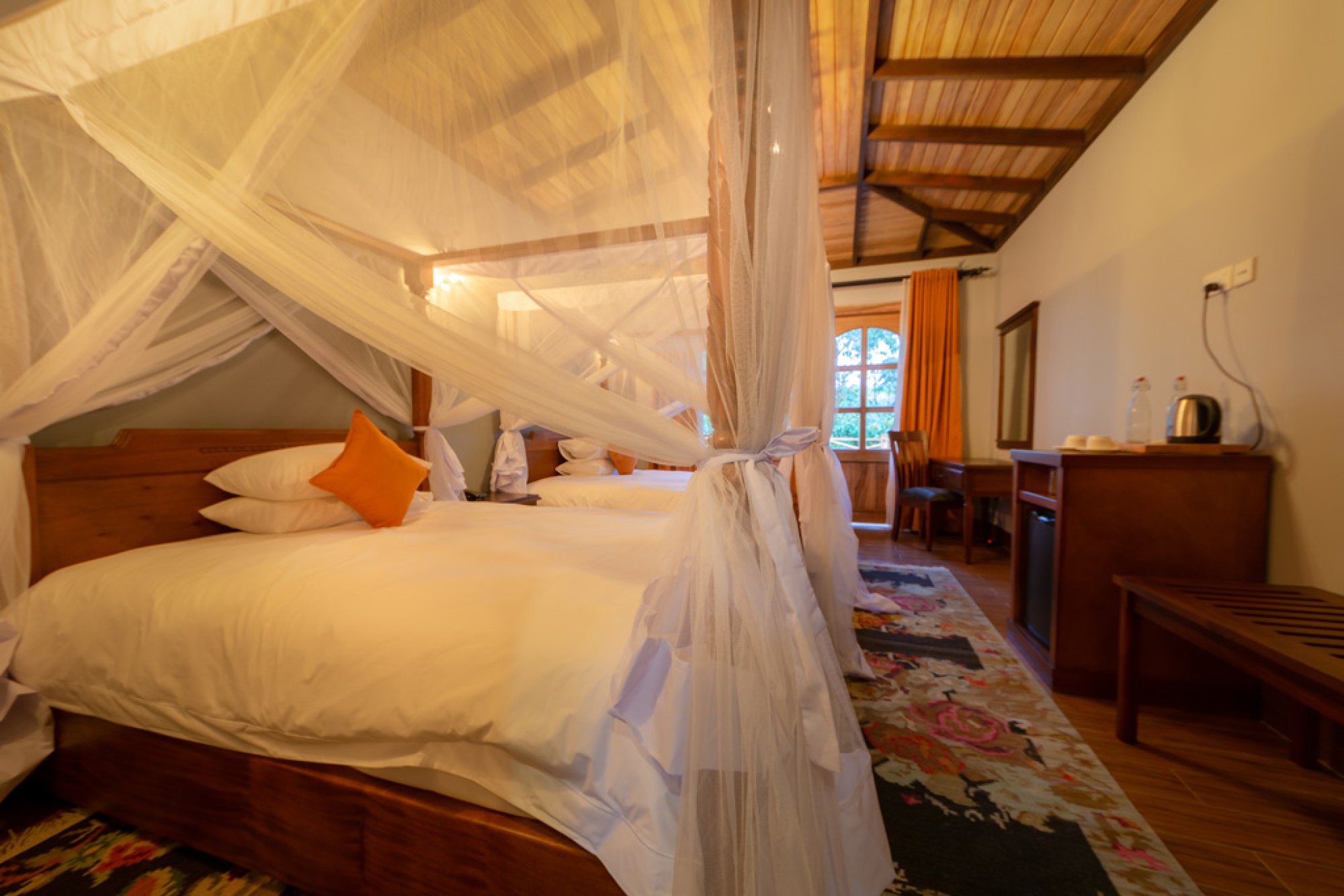 Tieto priestranné izby ponúkajú ideálne zázemie pre rodiny, ktoré si chcú užiť spoločný pobyt v nádhernej prírode, na pozadí Národného parku Kibale. Skladá sa z piatich luxusných spální s vlastnou kúpeľňou vybavenou sprchou alebo vaňou. K dispozícii sú štyri izby s dvoma oddelenými lôžkami a jedna s manželskou posteľou. Okrem toho sa môžete tešiť na súkromný balkón s posedením, odkiaľ sa odkrýva dych vyrážajúci výhľad.
