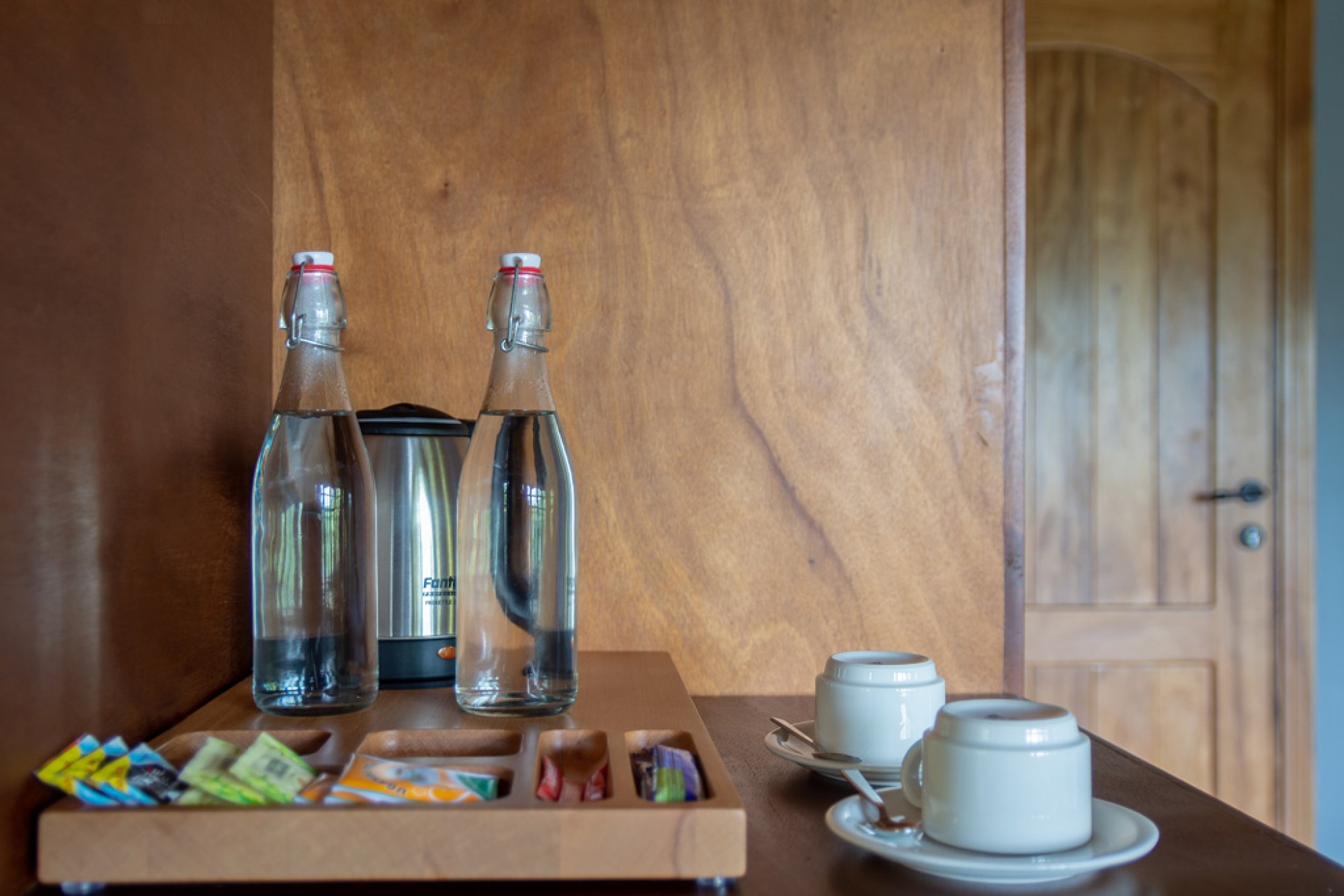 Súčasťou vybavenia všetkých chatiek je: manželská posteľ, kúpeľňa so samostatnou sprchou a vaňou, veľká súkromná terasa, služba rozostelania postele, príslušenstvo na prípravu čaju a kávy, trezor, Wi-Fi, fén, plná penzia, telefón, plne zásobený minibar, župany a papuče, expresné pranie bielizne.