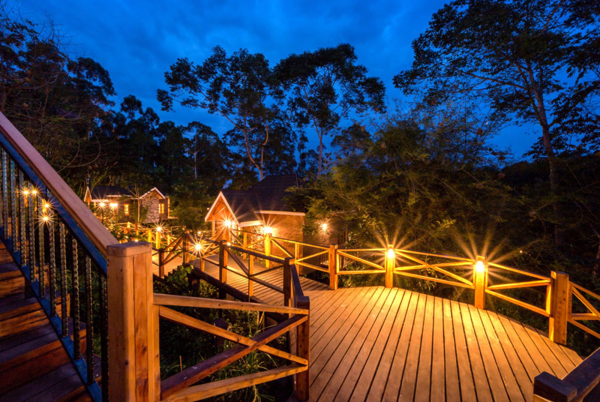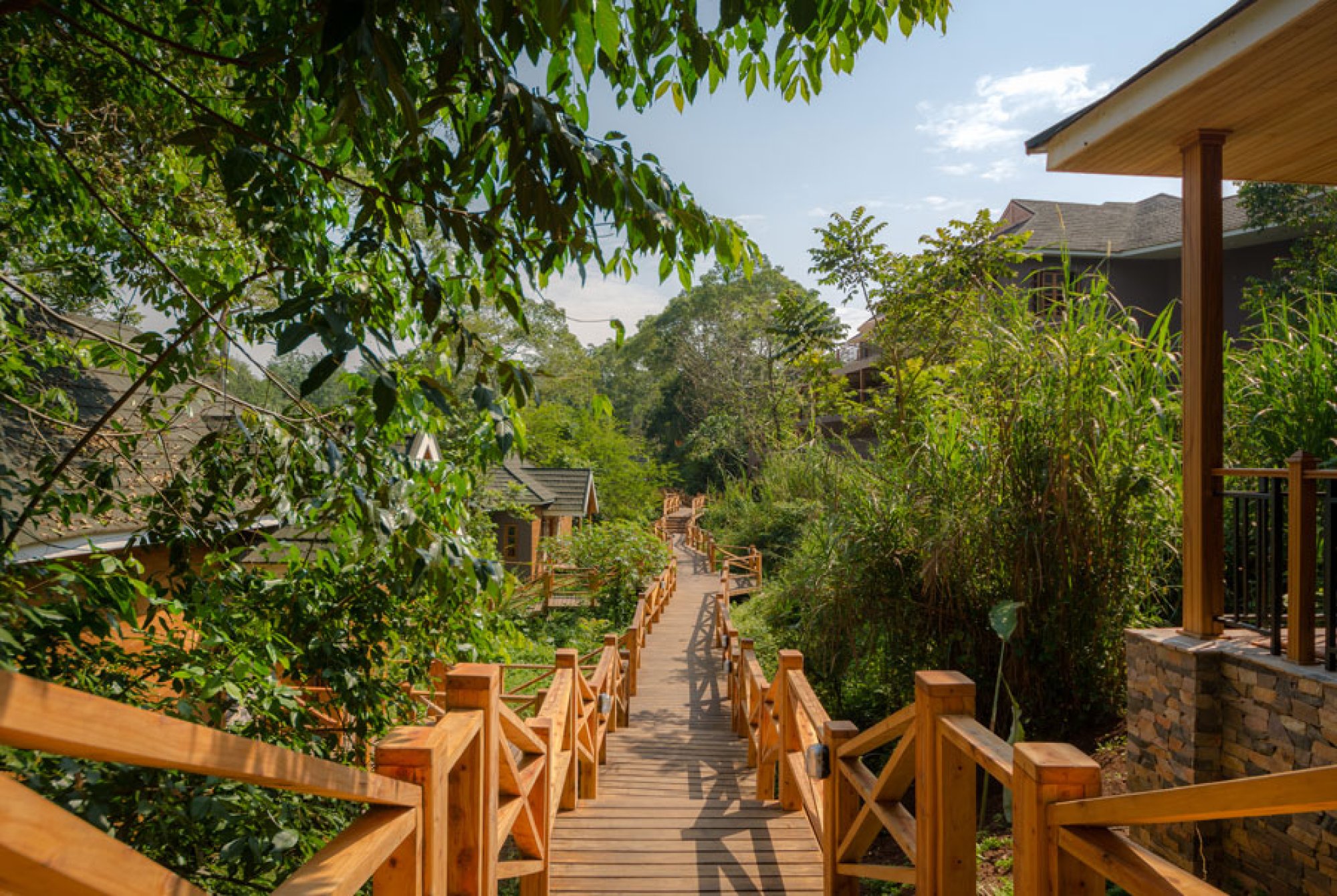 Chimpundu Lodge sa od väčšiny ugandských lodgí líši modernejším štýlom ubytovania. Ponúka štrnásť komfortných chatiek a nachádza sa len asi 2 km od návštevníckeho centra národného parku Kibale. Vďaka polohe na svahu sú jednotlivé izby prepojené drevenými schodmi a mostíkmi, čo dodáva miestu jedinečný charakter. Táto lodge je vhodnou voľbou pre rodiny s deťmi - ponúka priestranné rodinné izby a celkovo pôsobí skôr ako menší hotel. K dispozícii je aj privátny bazén a spa, ktoré váš pobyt spríjemnia a poskytnú priestor na oddych po dni plnom zážitkov.