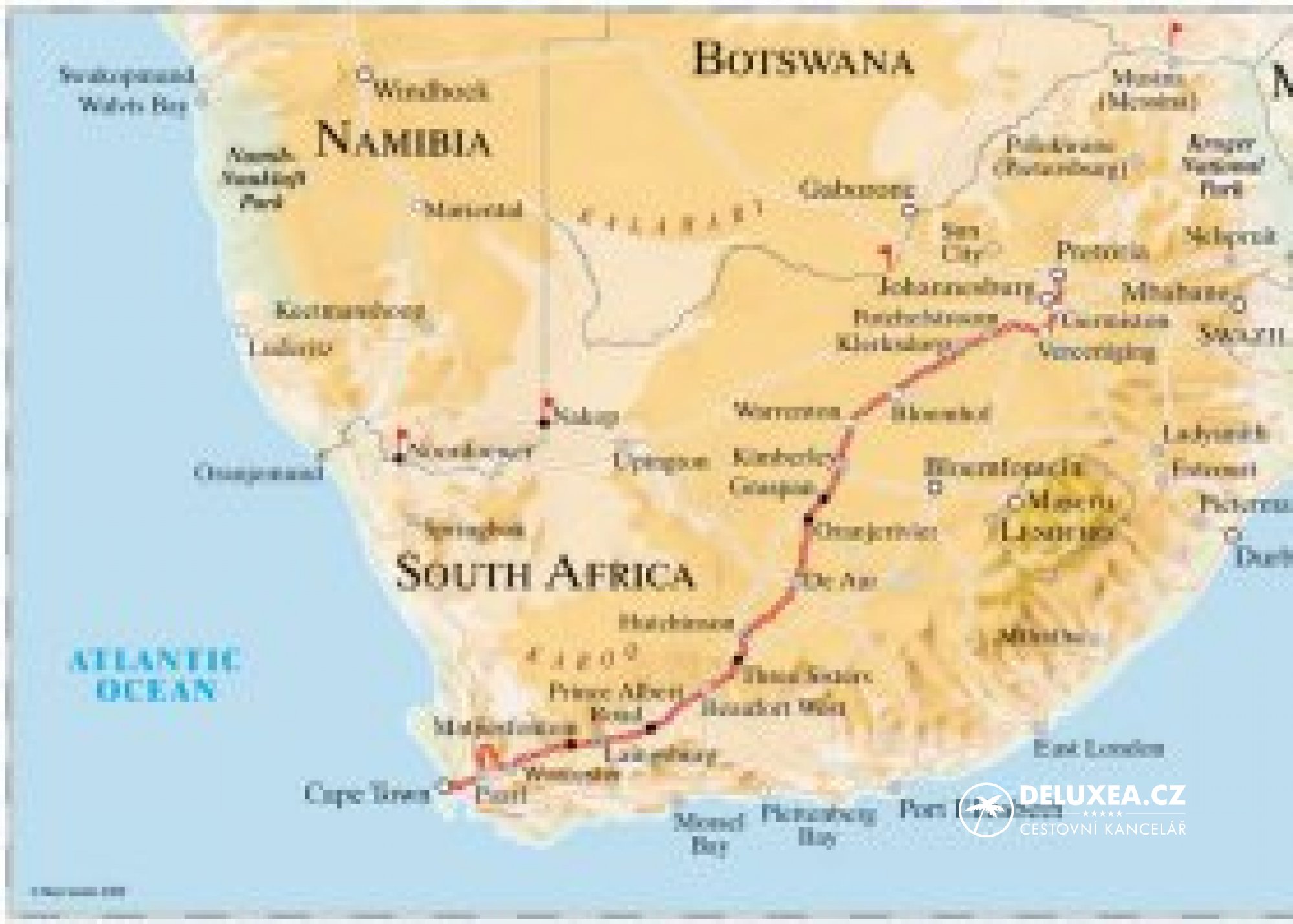 Itinerář cesty luxusním vlakem: Pretoria – Kapské město