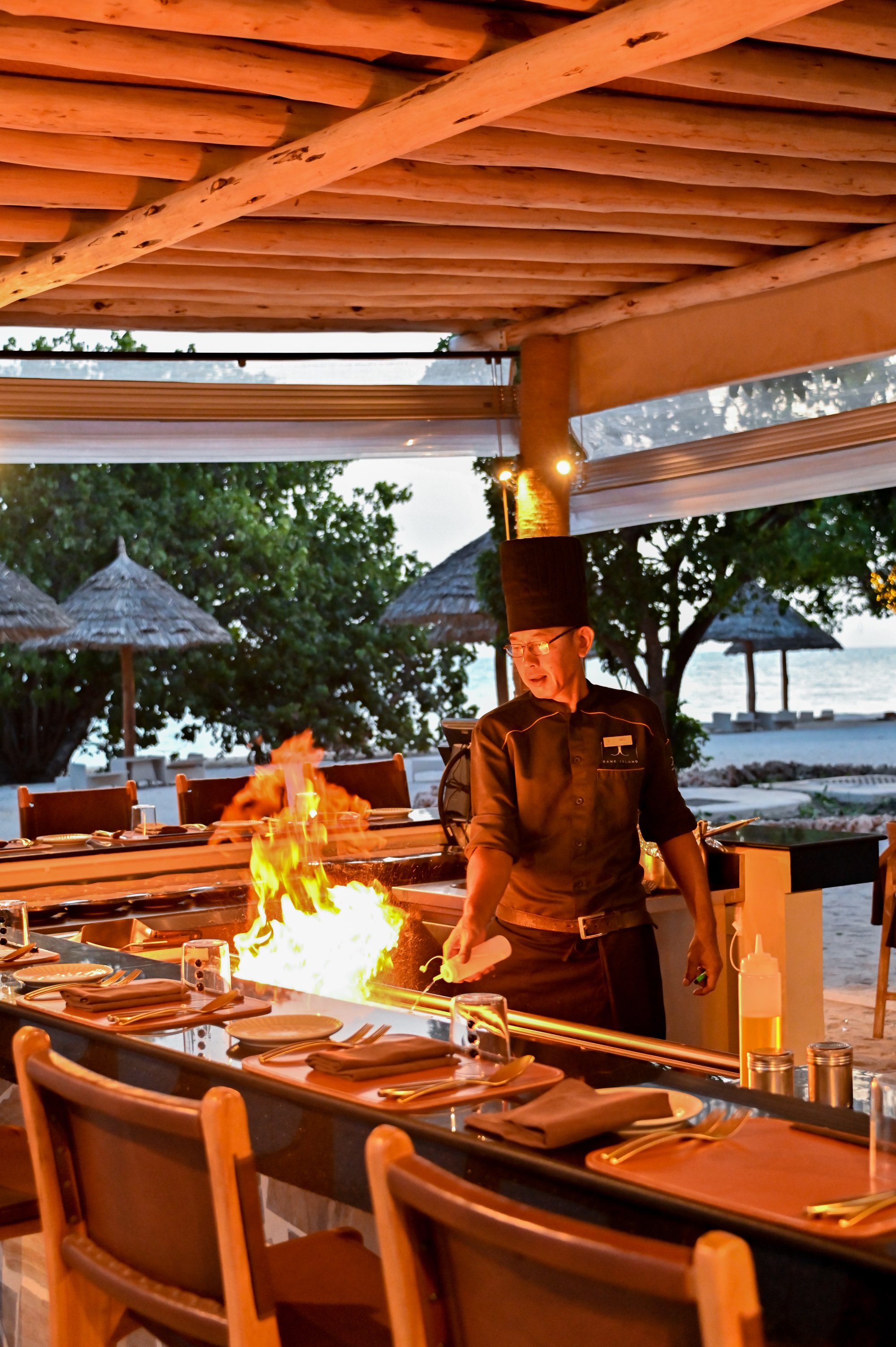 Hlavná reštaurácia je otvorená na raňajky a večere a ponúka jedinečný a podmanivý gastronomický zážitok, kde je tradičná podlaha nahradená jemnou, čistou vrstvou piesku. Podávajú sa tu čerstvo pripravované jedlá pri niekoľkých špeciálnych živých kuchárskych staniciach, kde si hostia môžu v rustikálnej a elegantnej atmosfére vybrať z pestrej ponuky lahodných pokrmov.