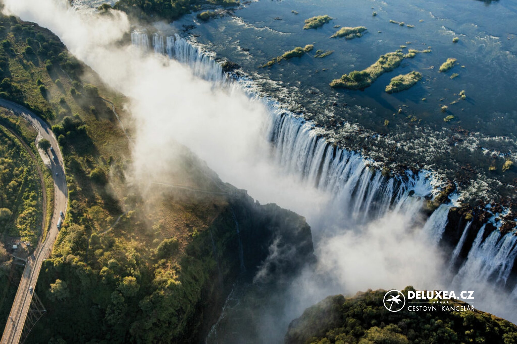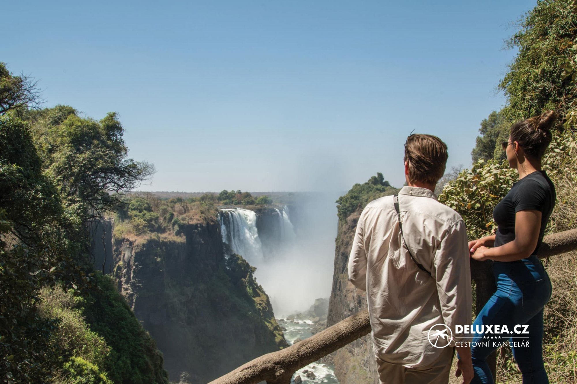 Majestátne Viktóriine vodopády sú jedným zo siedmich prírodných divov sveta a patria k najvyhľadávanejším africkým atrakciám. Tento pohľad vyrážajúci dych je tradične známy ako Mosi-oa-Tunya, čo znamená „Voda, ktorá hrmí“. Vodopády prepadajú cez útes so šírkou 1708 metrov a vytvárajú hromový hukot a obrovské stĺpy vodnej triešte, ktoré zahaľujú okolie do pôsobivej hmly.